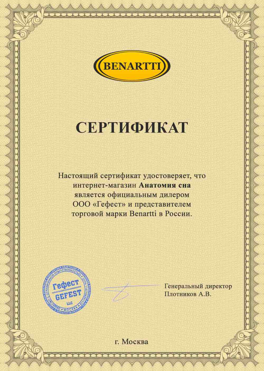Сертификаты официального дилера